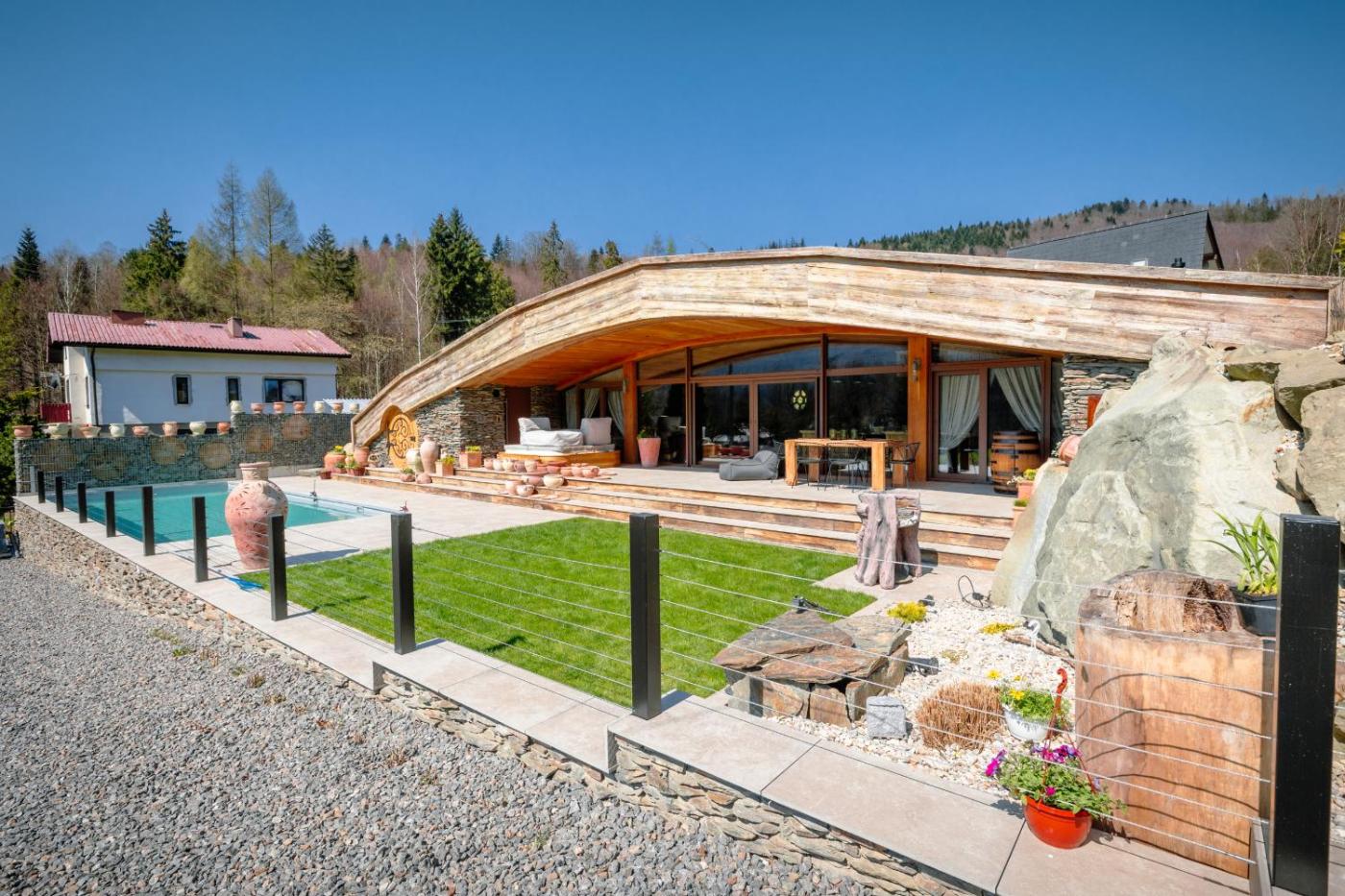 Willa z 3 sypialniami. This villas standout features are the pool with a view, hot tub and fireplace. Boasting a private entrance, this air-conditioned villa features 1 living room, 3 separate bedrooms and 2 bathrooms with a shower and a hairdryer. Guests will find a stovetop, a refrigerator, a dishwasher and kitchenware in the kitchen. The villa also comes with a barbecue. Featuring a terrace with garden views, this villa also features a tea and coffee maker and a flat-screen TV. The unit has 4 beds and 1 futon. Willa - 7 osobowy. Powierzchnia pokoju ok.: 100 mkw.