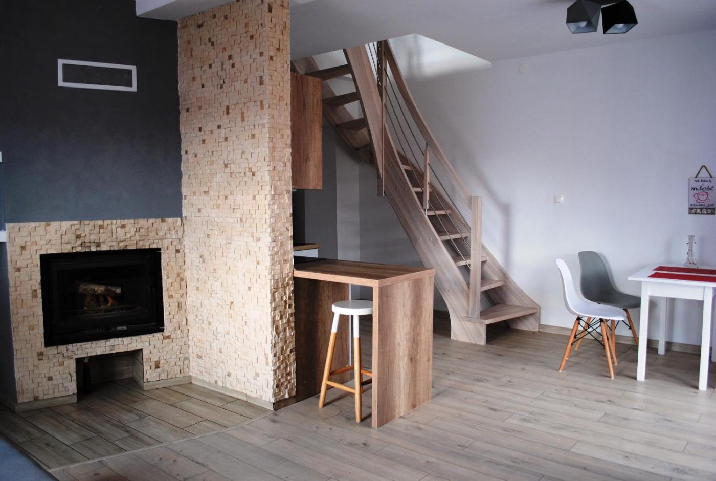 Apartament. This apartment features a fireplace. This spacious apartment features 1 living room, 2 separate bedrooms and 1 bathroom with a shower. Guests will find a stovetop, a refrigerator, kitchenware and a tea and coffee maker in the well-fitted kitchen. The apartment also comes with a barbecue. Boasting a terrace with garden views, this apartment also features a washing machine and a flat-screen TV. The unit has 5 beds. Apartament - 7 osobowy. Powierzchnia pokoju ok.: 65 mkw.