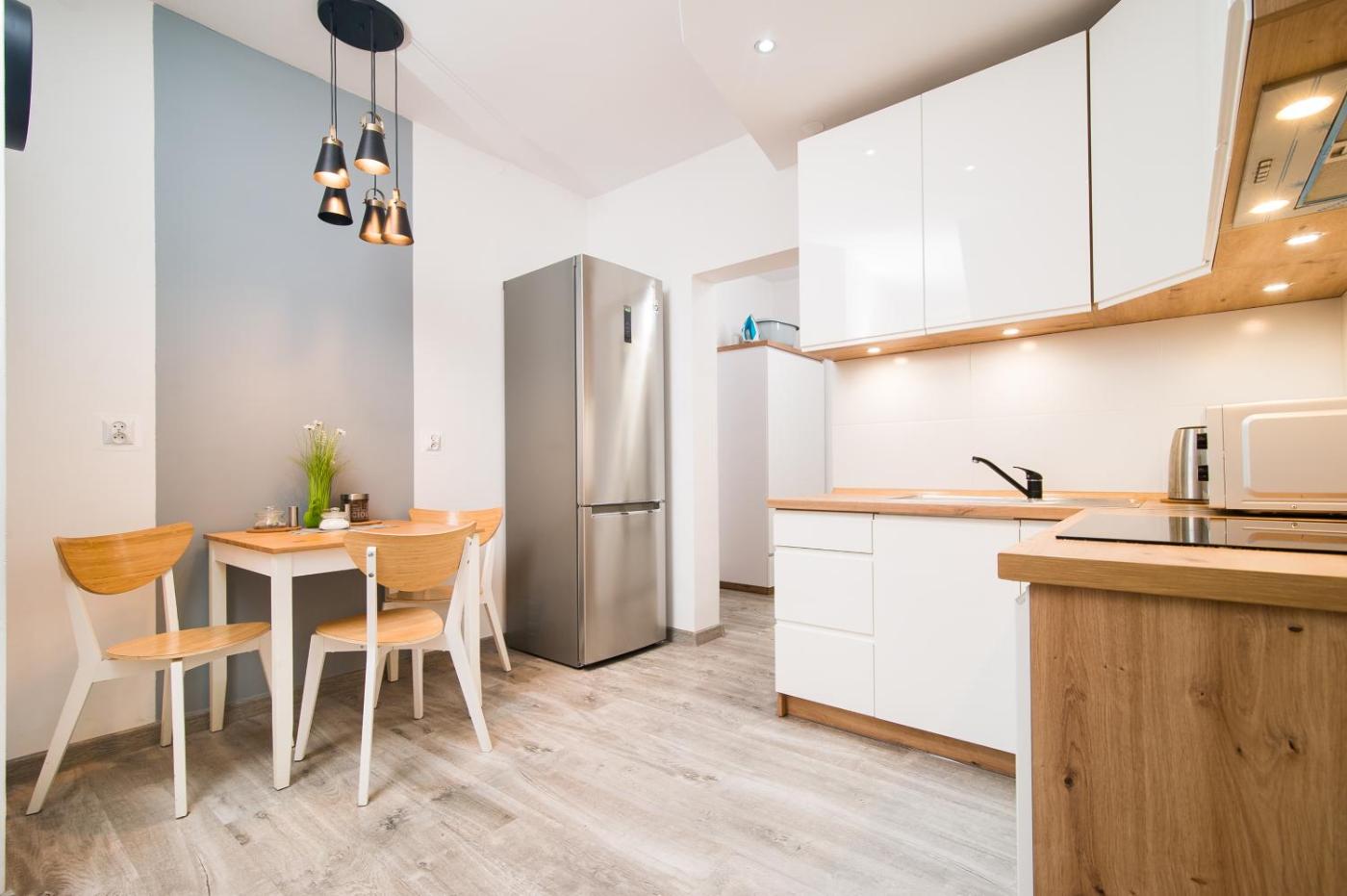 W apartamencie z 1 sypialnią zapewniono salon z telewizorem z płaskim ekranem z dostępem do kanałów satelitarnych, kuchnię z pełnym wyposażeniem, w tym lodówką i piekarnikiem, a także łazienkę (1) z prysznicem. W apartamencie zapewniono ręczniki i pościel.