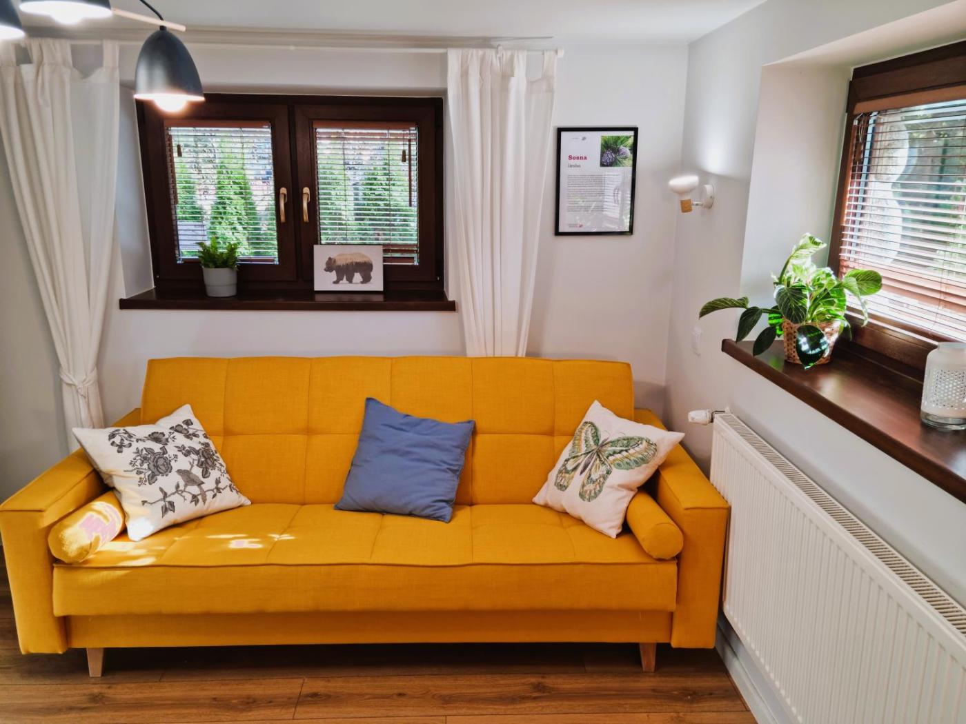 Pokój trzyosobowy. The triple room features soundproof walls, a tea and coffee maker, as well as a private bathroom boasting a shower and a hairdryer. The triple rooms kitchenette, which has a refrigerator and kitchenware, is available for cooking and storing food. Among the room amenities are a seating area, a dining area, a wardrobe as well as an outdoor dining area and mountain views. The unit has 1 bed and 1 futon. Pokój Trzyosobowy - 3 osobowy. Powierzchnia pokoju ok.: 22 mkw. ;