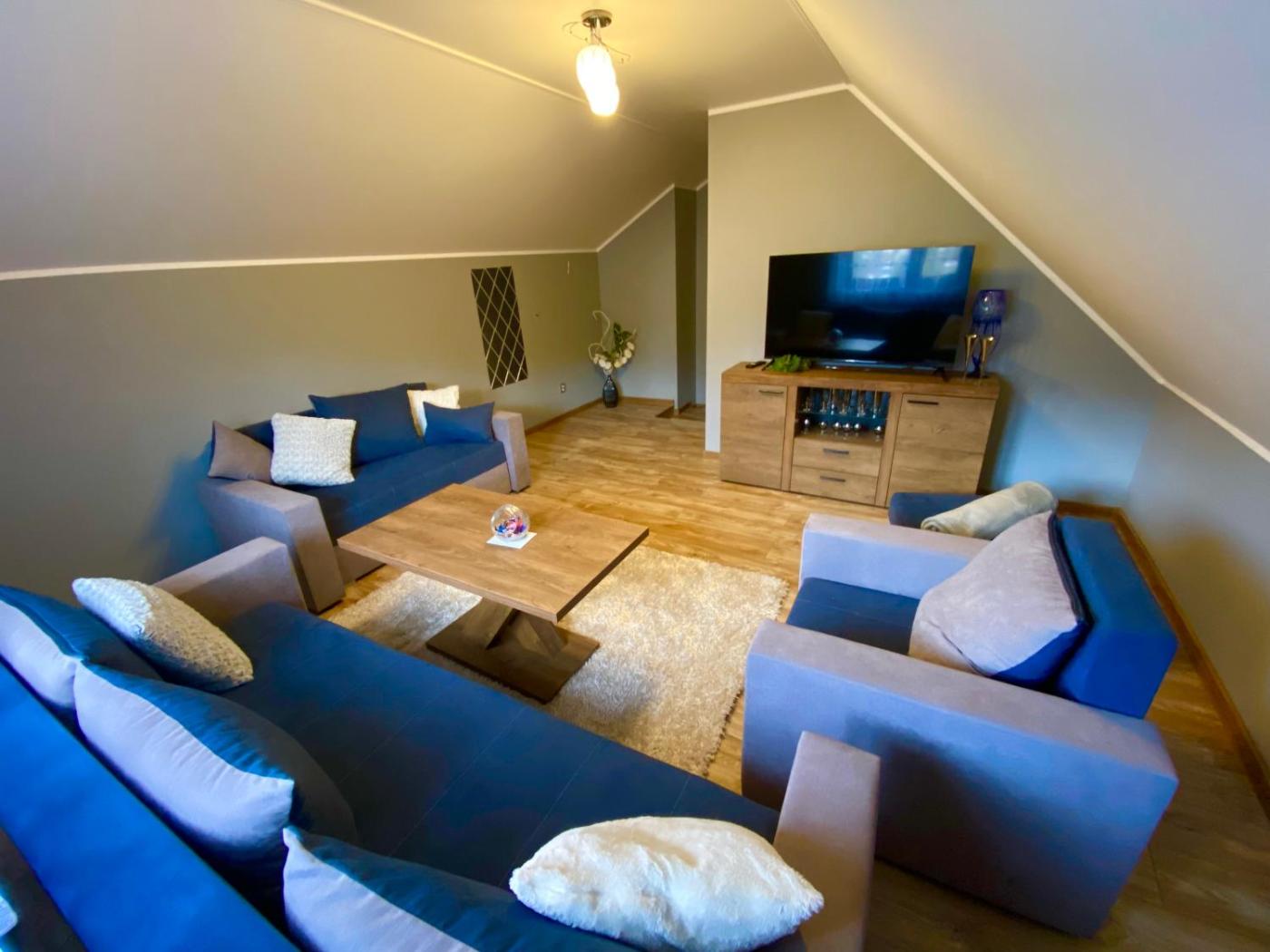 Domek z 2 sypialniami. Featuring a private entrance, this spacious chalet also comprises 2 living rooms, 2 separate bedrooms and 2 bathrooms with a shower. Guests will find a stovetop, a refrigerator, a dishwasher and kitchenware in the fully equipped kitchen. The chalet also provides guests with a barbecue. Boasting a terrace with garden views, this chalet also provides a washing machine and a flat-screen TV with cable channels. The unit offers 6 beds. Domek - 5 osobowy. Powierzchnia pokoju ok.: 160 mkw.