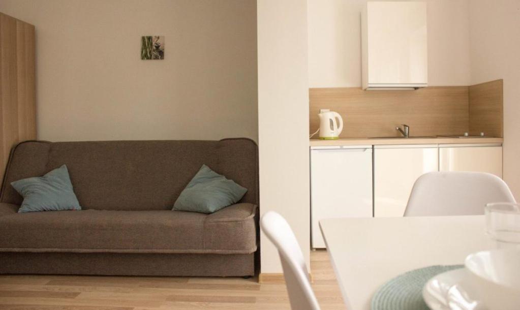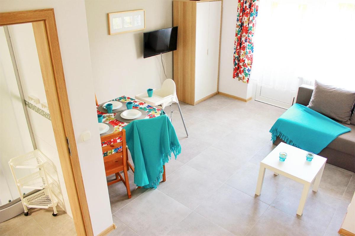 Studio. The studio provides a sofa and a high chair for children, as well as a private bathroom boasting a shower. Guests will find a stovetop, a refrigerator, kitchenware and an electric kettle in the fully equipped kitchenette. The studio also comes with a barbecue. The studio features a private entrance, a dining area, a wardrobe, a flat-screen TV, as well as garden views. The unit has 2 beds. Studio - 4 osobowy. Powierzchnia pokoju ok.: 22 mkw. ;